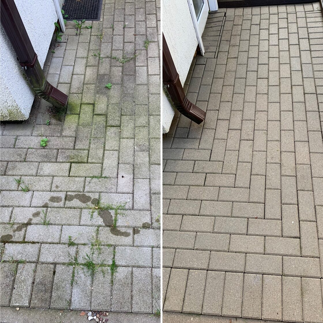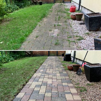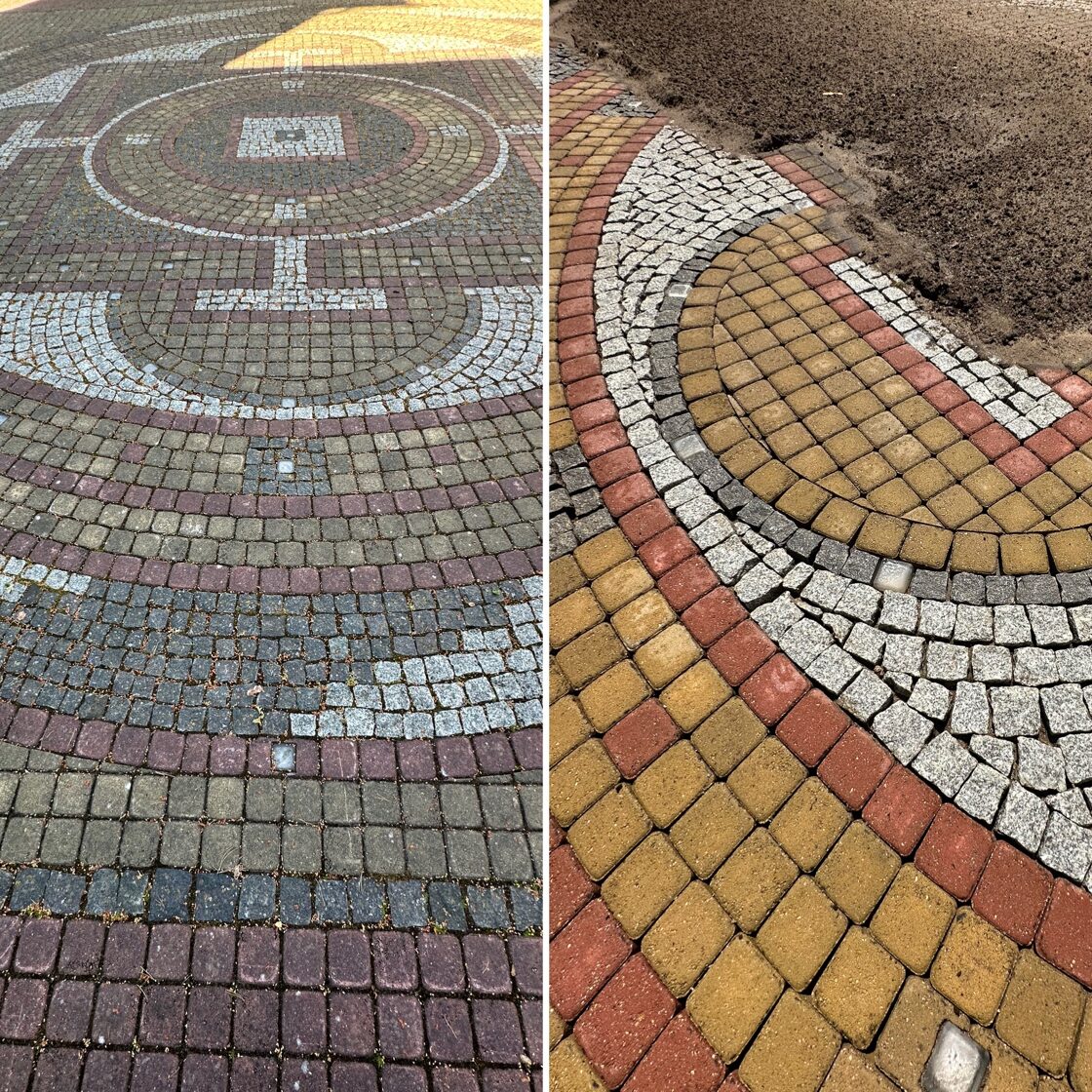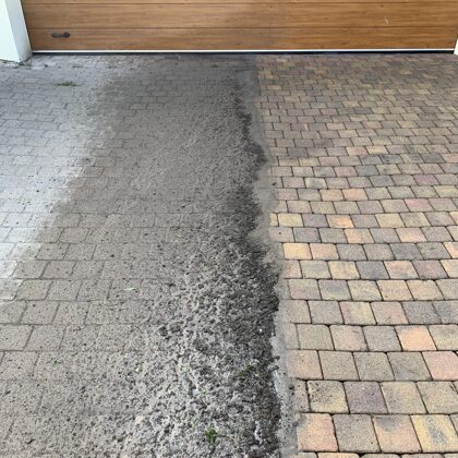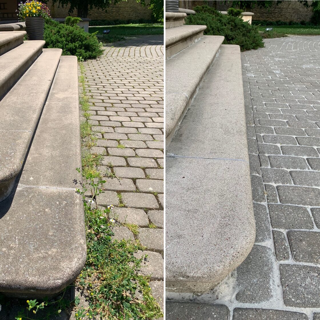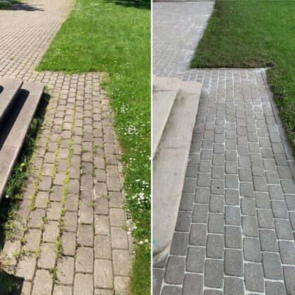 - Bruģa tīrīšanai tiek izmantota profesionāla augspiediena mazgāšanas tehnika.