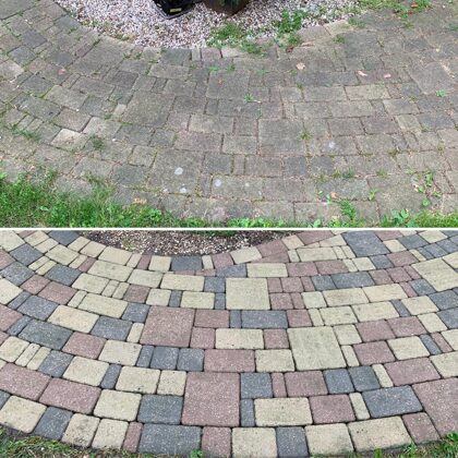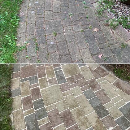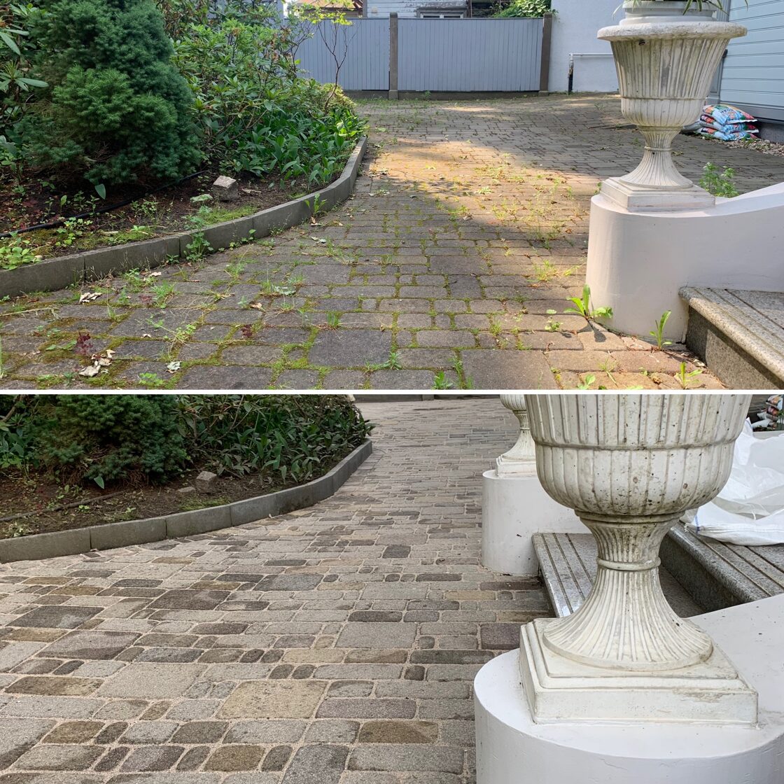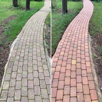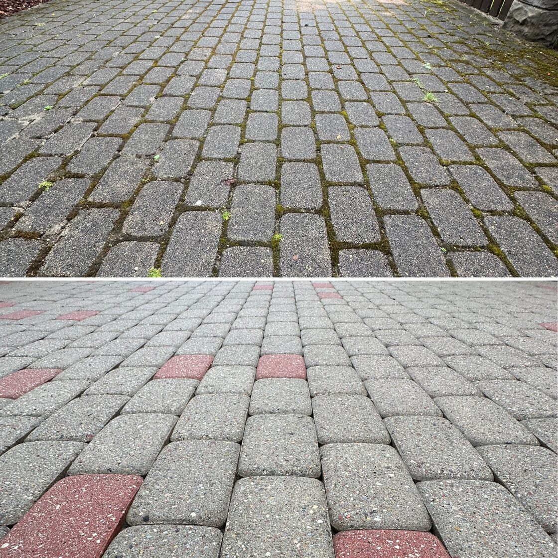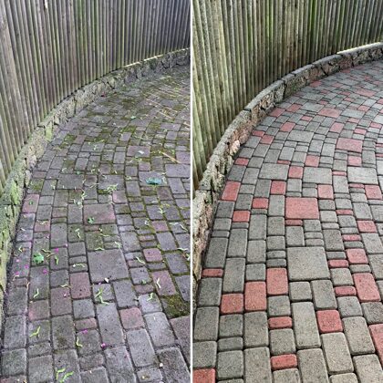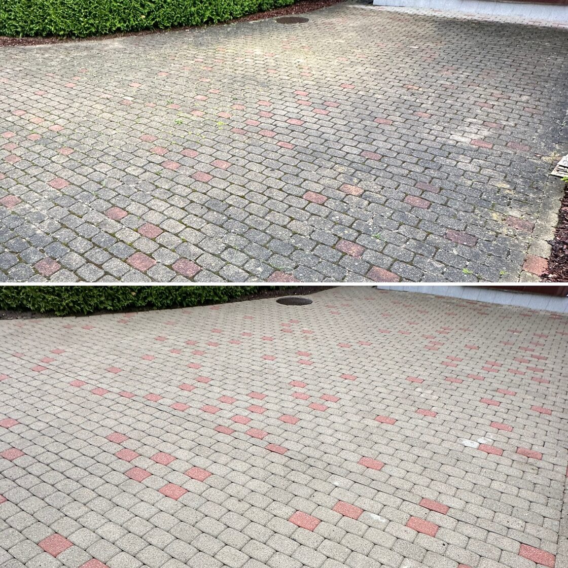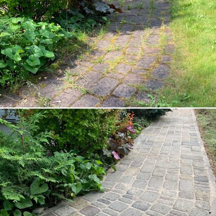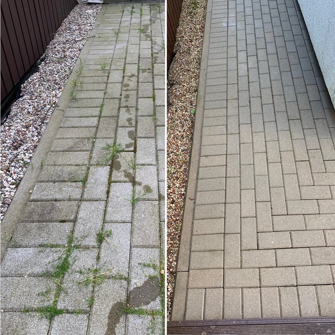 - Bruģa tīrīšanai tiek izmantota profesionāla augspiediena mazgāšanas tehnika.