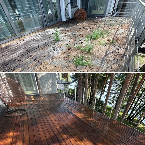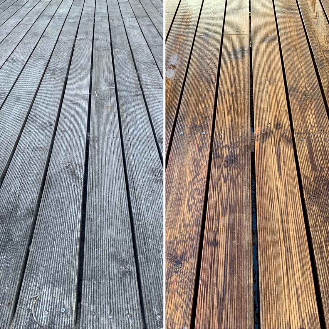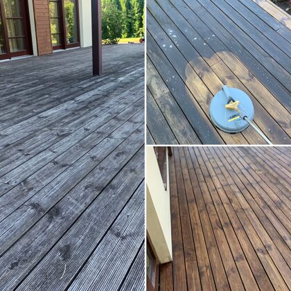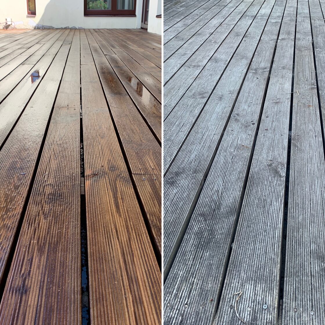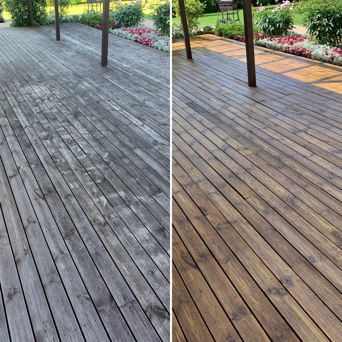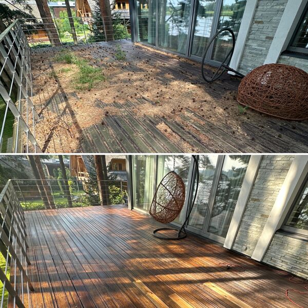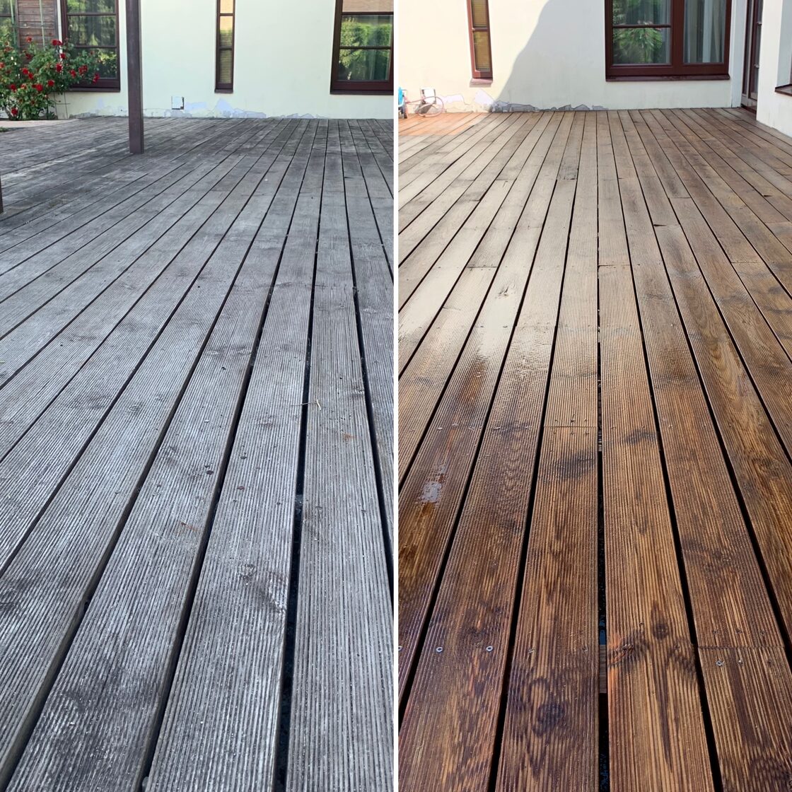 Pēc mazgāsanas terases materiāls būs spējīgs sevī iesūkt vairāk apdares līdzekļa.