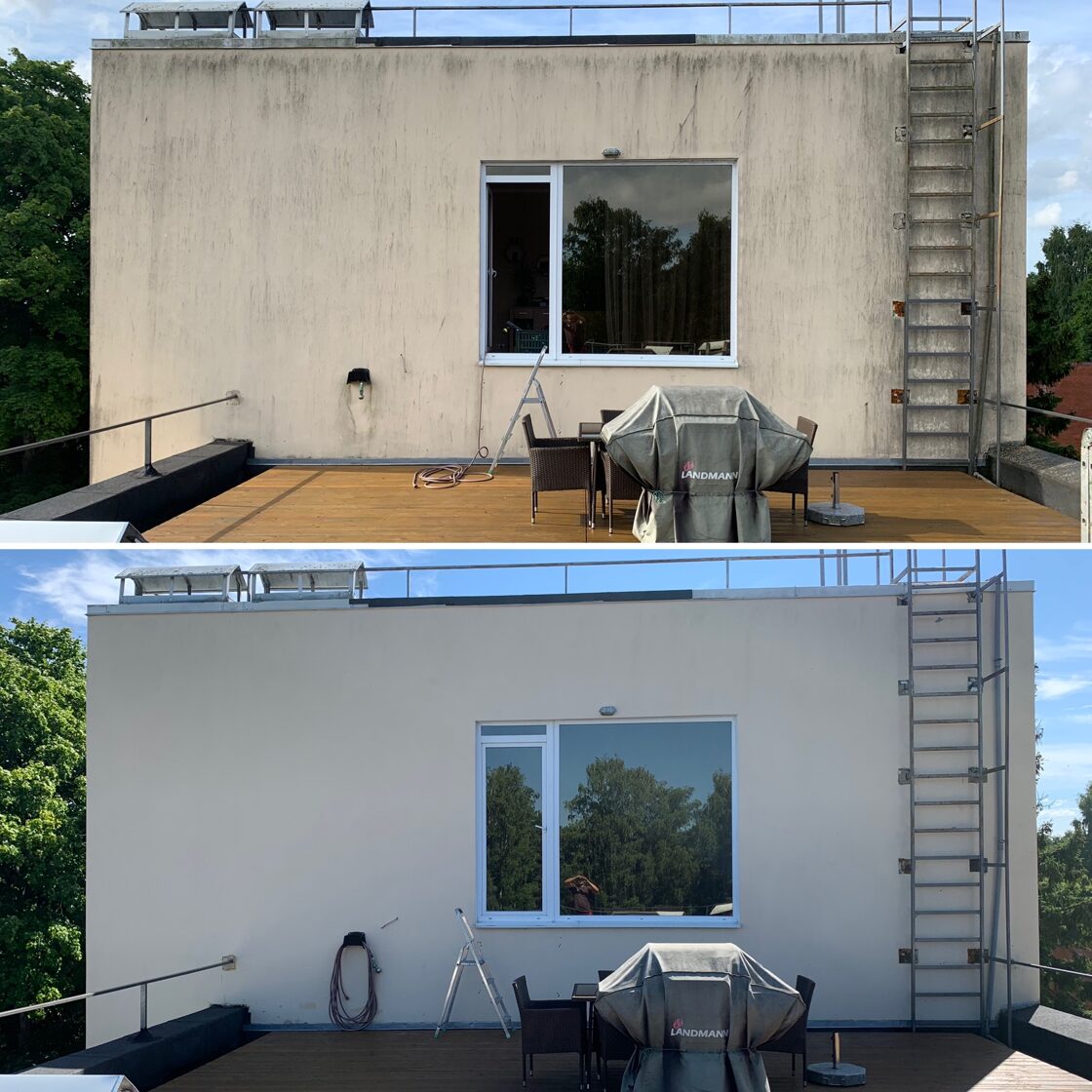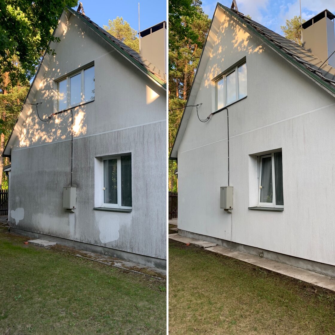 - Fasādes mazgāšanas rezultātā ir iespēja atbrivoties no pelējuma, sūnas un citām sēnītēm.