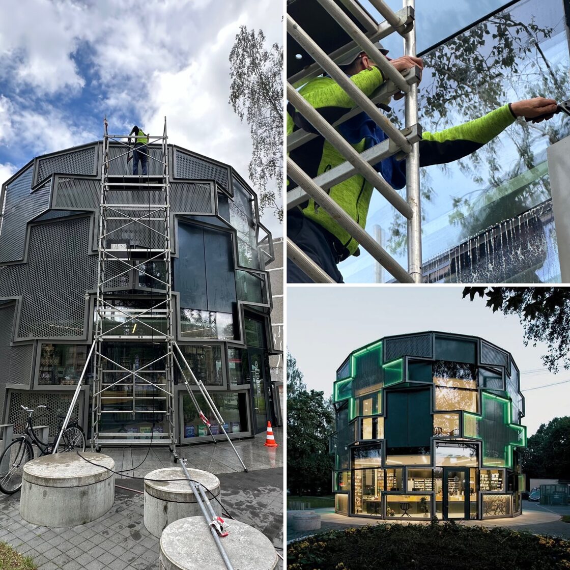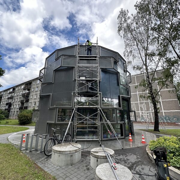 Logu mazgāšanu iespējams veikt visdažādākās sarežģītības un augstuma ēkām.